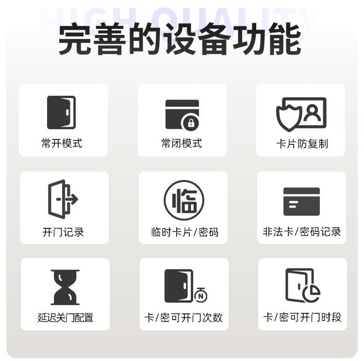 阜阳这款智能门锁提供室内门锁和防盗门锁两种选择,其中室内门锁尺寸为 2806521mm,适配 5050 锁体;防盗门锁尺寸为 3657021mm,适配 6068 锁体,可满足不同场景的安装需求。它采用铝合金一体成型搭配钢化玻璃面板打造,兼具坚固耐用的品质与简洁美观的视觉效果。门锁支持蓝牙无线通讯,解锁方式丰富多样,密码、卡片、蓝牙、钥匙四种方式随心选择,满足不同使用习惯与应急需求。其工作温度范围为 - 20~70℃,能适应多数地区的气候条件,采用碱性电池供电,安装更换便捷,是兼具安全性与实用性的门锁选择。